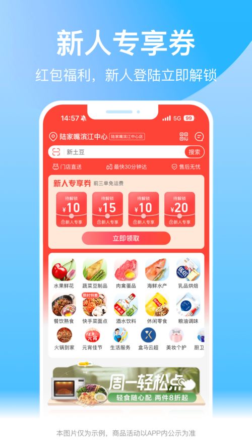 想象你正坐在家里,肚子咕咕叫,却不想出门。这时,你的手机屏幕上突然闪现了一个神奇的APP——盒马鲜生。它就像一位贴心的私人超市,无论何时何地,都能让你享受到新鲜美味的食材。今天,就让我带你全方位探索这个神奇的盒马鲜生app吧!