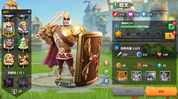 钢筋铁骨:作为守城将领时,部队防御提升11%,生命提升11%
