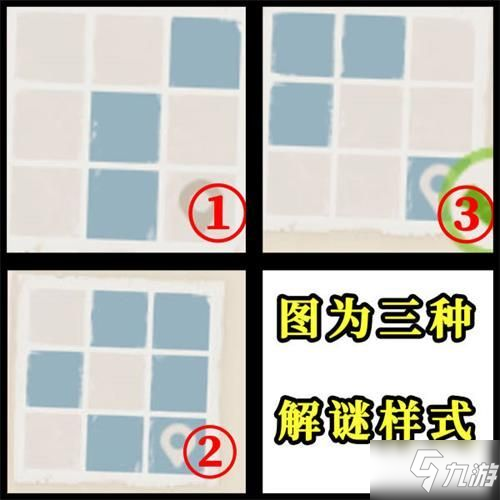 (3)在埋藏着「密藏」的藏宝地中,有些藏宝地的地面上铺有特殊的地砖,当初次踩踏在某块地砖上时,这块地砖会亮起,再次踩踏亮起的地砖时,亮起的地砖则会熄灭。当踩踏一块地砖后,踩踏的下一块地砖需与当前地砖至少有一边相接。如果能按照「解谜线索」中所示的式样让地砖亮起的话,就能获取「密藏」。