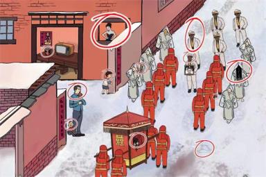 5、本关找鬼有点难度,不但花轿里面有个鬼新娘,花轿右上地面一滩水印有个水鬼。